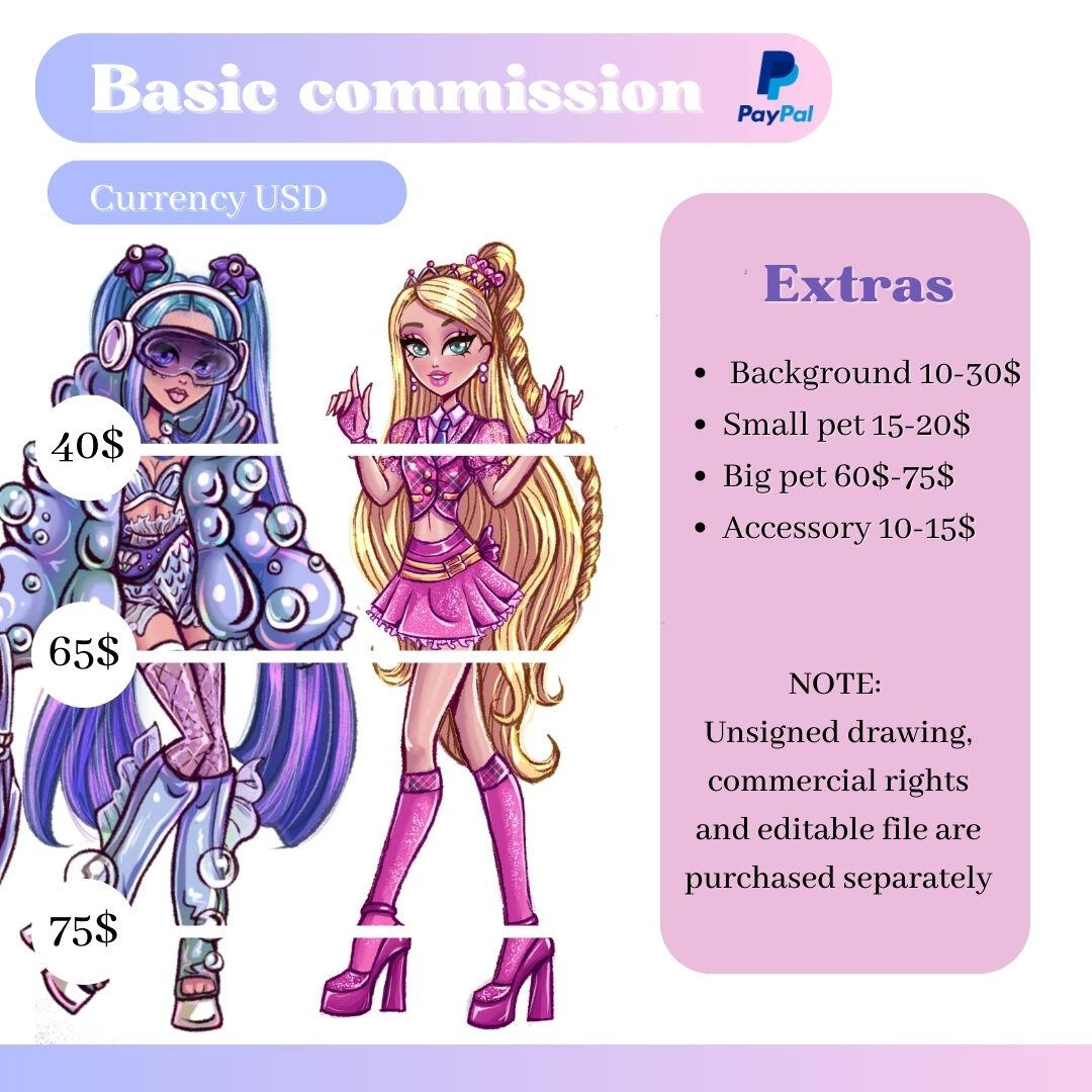 • Editable files: Remember that when you buy one of my commissions, you are paying for the final product (artwork in JPG or PNG file) and not for the editable files, transparent backgrounds etc. These must be purchased as an extra, as well as commercial rights.