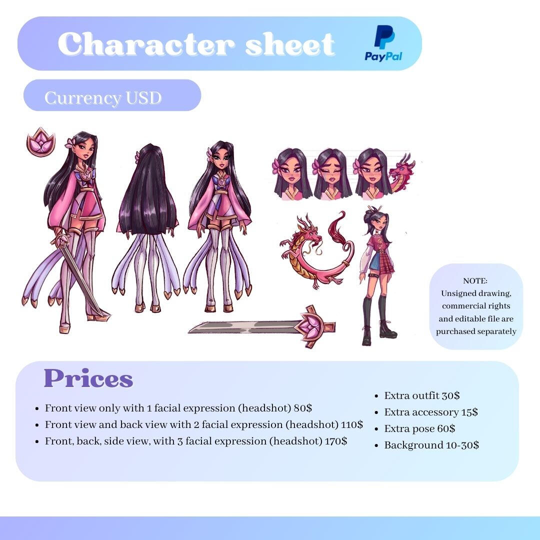 •Description of the commission and sending references: When starting the commission give me a detailed description of the commission, include everything you consider necessary so that my design is close to what you have in mind. Also, send me all the images related to your order, references, inspiration images, moodboards (if you have them), drawings or old designs of your character (if you have them).